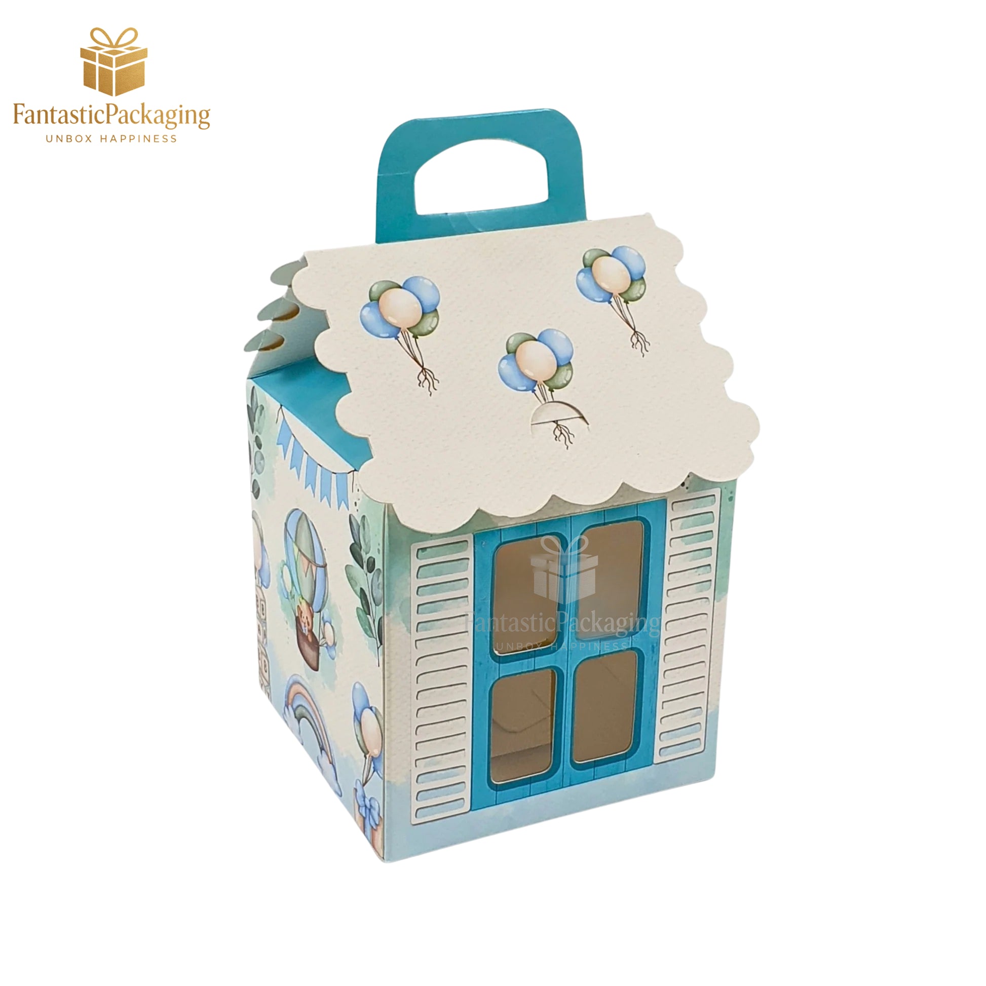Blue Sky Hut Gift Box – Adorable Cottage-Style Baby Theme Packaging (4"x4"x6.75")